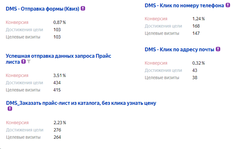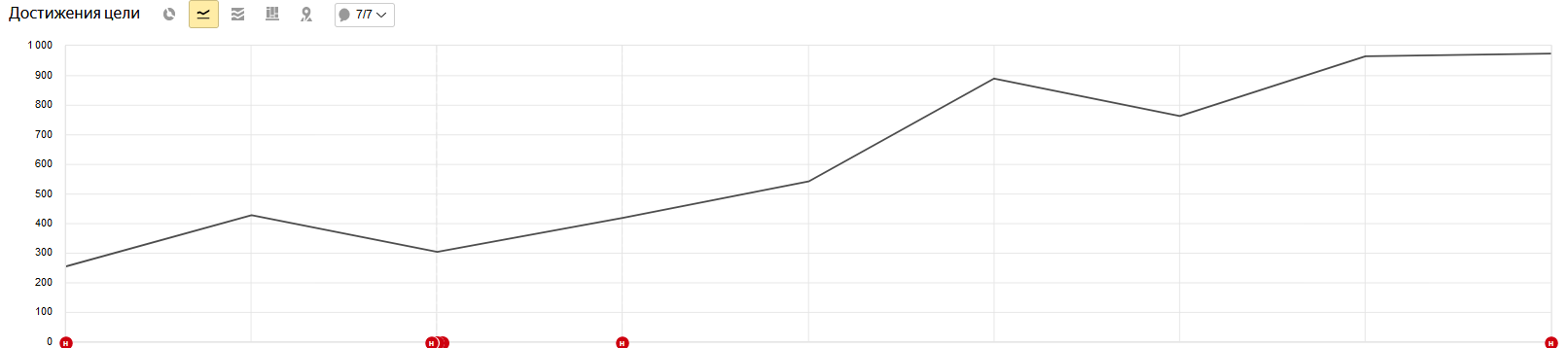 Динамика достижения цели «отправка формы заявки» (данные Яндекс.Метрики)