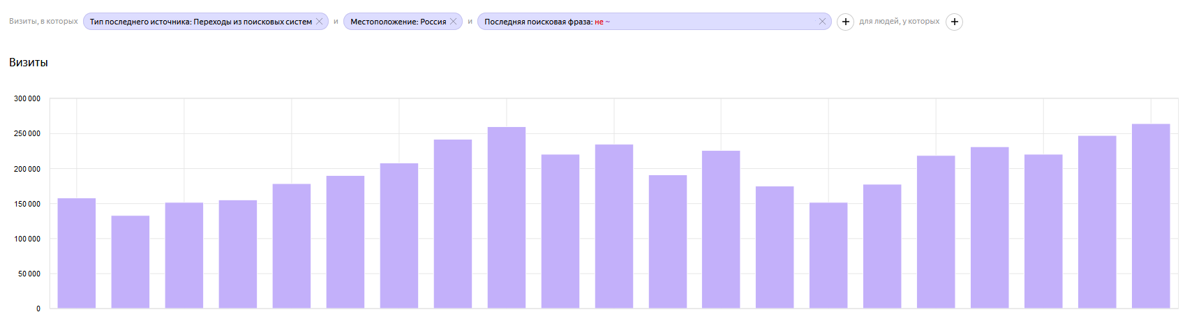 На дату старта продвижения небрендированный трафик из поисковых систем составлял 157 210 визитов. Несмотря на хороший стартовый трафик, потенциал ресурса был реализован не полностью: часть страниц не индексировалась, структура нуждалась в доработке, а карточки товаров требовали оптимизации.